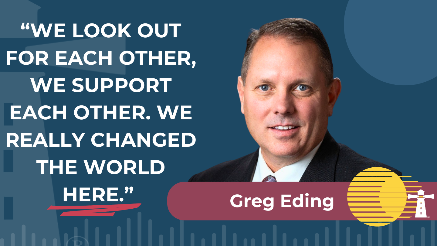 “We look out for each other, we support each other. We really changed the world here by thinking differently about organizational support.” – Greg Eding